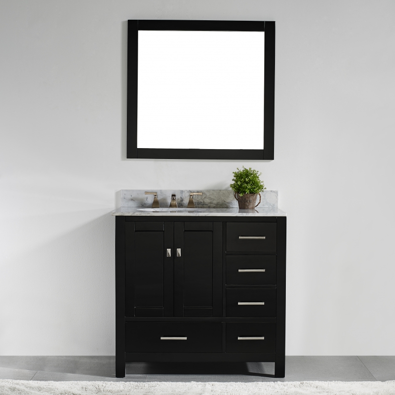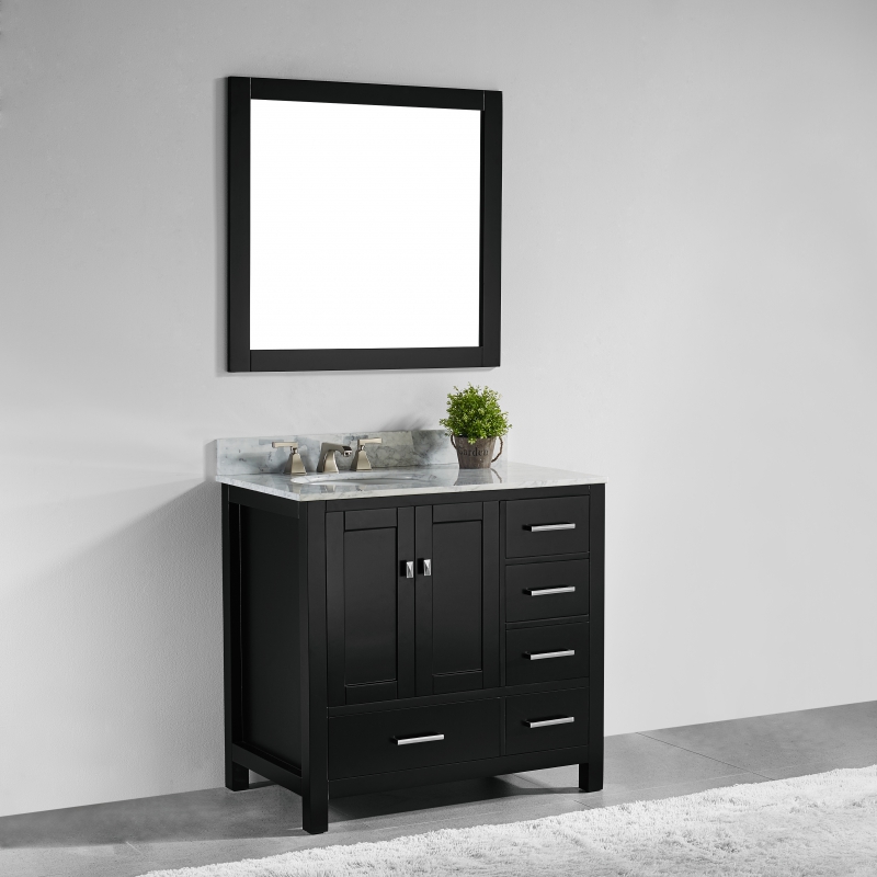 This bathroom vanity set by innoci-usa adds a touch of sophistication to your bathroom with its modern design. Featuring soft-closing drawers and doors, ample storage space and functional drawers, Italian Carrara white marble countertop, undermount ceramic sink, and a solid wood construction make this vanity set a perfect selection.